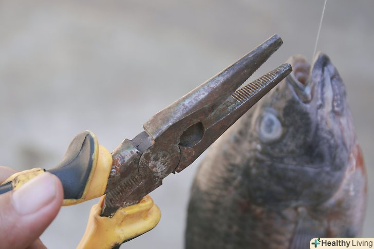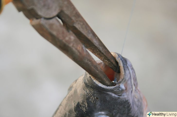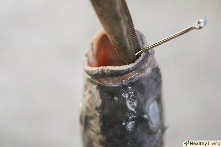 Відкрийте рибі рот і схопіть плоскогубцями гострий кінчик гачка. щоб гачок легко рухався, на волосіні не повинно бути натягу.