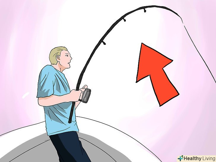 Для будь-якого виду риби або снастей, волосінь повинна бути завжди натягнута, таким чином риба не зможе зіскочити з гачка. крім того ваші рухи повинні бути плавними, таким чином отвір у роті у риби не стане більше, і гачок буде легше витягнути.- Зупиніть спливає рибу при необхідності. у певних ситуаціях буде правильним прийняти упор і зупинити рибу.