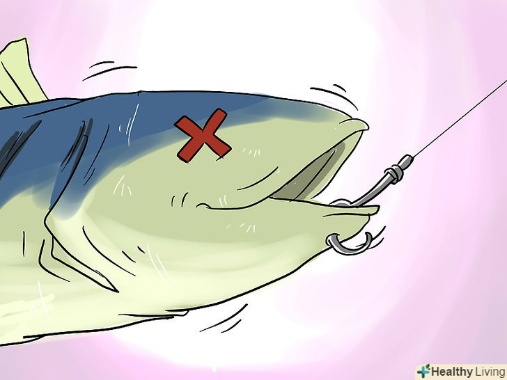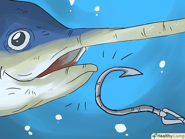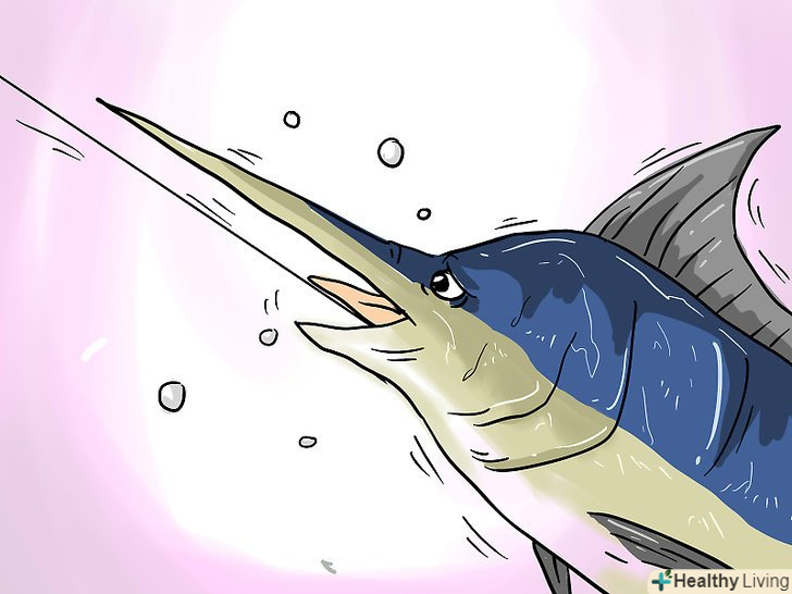 Оглушіть велику рибу перед тим, як затягувати в човен. Ловля великих екземплярів може бути небезпечною; краще знерухомити рибу, для того щоб уникнути зайвої уваги «зелених» до свого човна.- Не сідайте на рибу верхи. Велику рибу складніше і небезпечніше ловити на острогу. Марлін не надто гнучкий, і зелений Марлін кидається, коли ви використовуєте острогу, це може бути небезпечним через його довгого дзьоба і подвійного гака на приманці для марлінів.