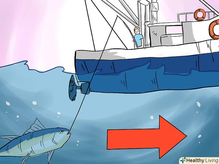 - Використовуйте переваги вашого човна. для більшості великих риб, найкраще продовжувати рух човна вперед, щоб запобігти напрямок риби вниз. Тримайте велику рибу близько до поверхні.