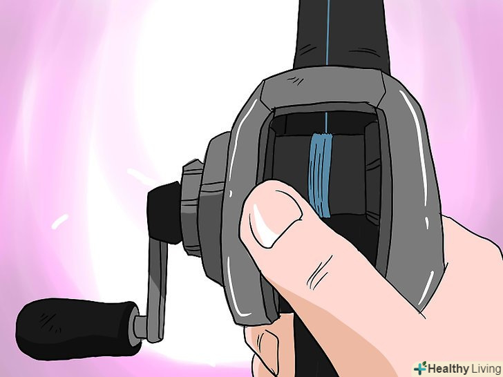 - Коли котушка вже практично порожня, натисніть кінчиками пальців на крутиться котушку спінінга. Піймавши велику рибу, надівши на руки рукавички, ви можете захоплювати сторони котушки для додаткового опору.
