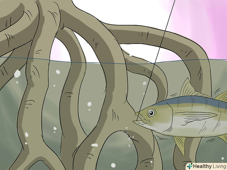 - У солоній воді, коріння мангрового дерева становлять таку ж небезпеку, як і пні, тому, коли риба йде в цьому напрямку, надайте себе волі випадку. У більшості випадків, не буде достатньо часу для того щоб посилити натяг, і пристосувати опір, чинячи тиск на котушку рукою.