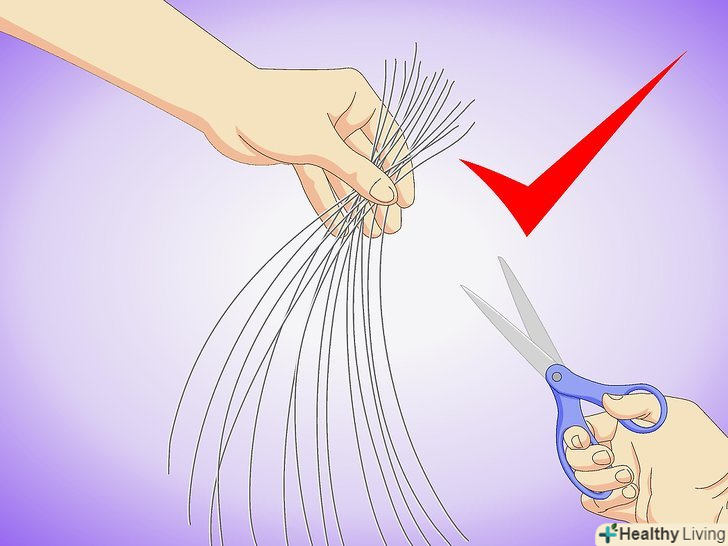 Працюйте з однією половиною обода (якби це був циферблат, то ви б взяли частину від 6 до 12 годин). Прив'яжіть нитки до обода на відстані 2,5 сантиметра один від одного, так щоб половина обода виглядала "обросла довгим волоссям".