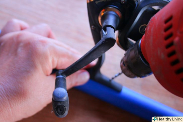 Прикріпіть заздалегідь зроблену котушку до більшої трубці. купуйте рибальську котушку і прикріпіть її до трубки ПВХ діаметром 1.8 см.- Ви можете зробити це дрилем. Просвердлите дві дірки, а потім вкрутіть в них котушку.