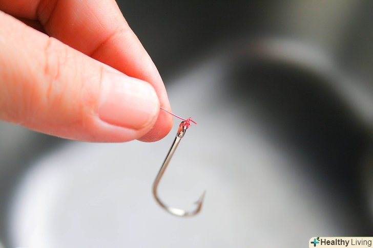 - До кінця стрічки прив'яжіть 300-600 см тонкої рибальської волосіні. Так вам буде легше кріпити гачок.