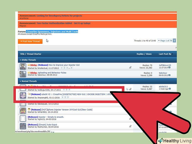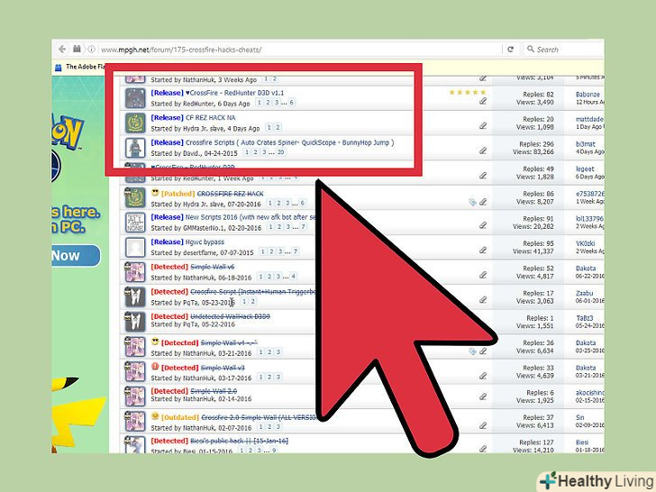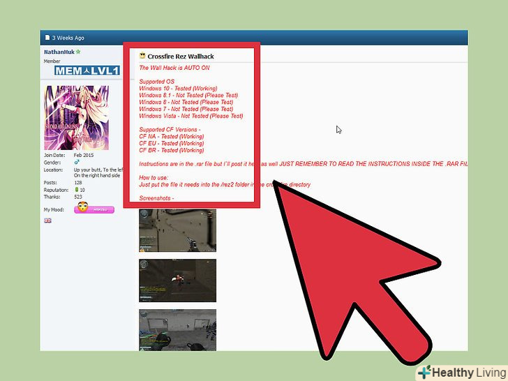 Відкрийте сайт, присвячений злому ігор. в інтернеті можна знайти кілька спільнот користувачів, які займаються зломом гри CrossFire. Так як зломщики досить швидко виявляють і блокують, потрібно знайти сайт, на якому викладені найостанніші з них. Сайт одного з найпопулярніших спільнот: mpgh.net . Відкрийте розділ " CrossFire Hacks amp; Cheats "(зломщики і чит-програми для CrossFire), в якому наведені працюють зломщики.- Для того щоб завантажити зломщик, вам, швидше за все, доведеться створити обліковий запис.