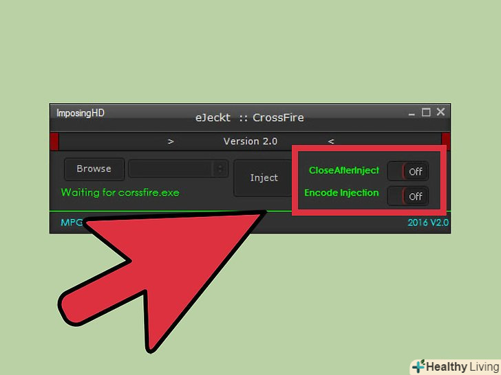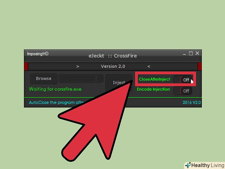 У меню, виберіть Опції "Auto-Inject «(Автоінжекція) і» Close on inject" (закрити по завершенні процесу). так ви збільшите шанси на успішний запуск зломщика.
