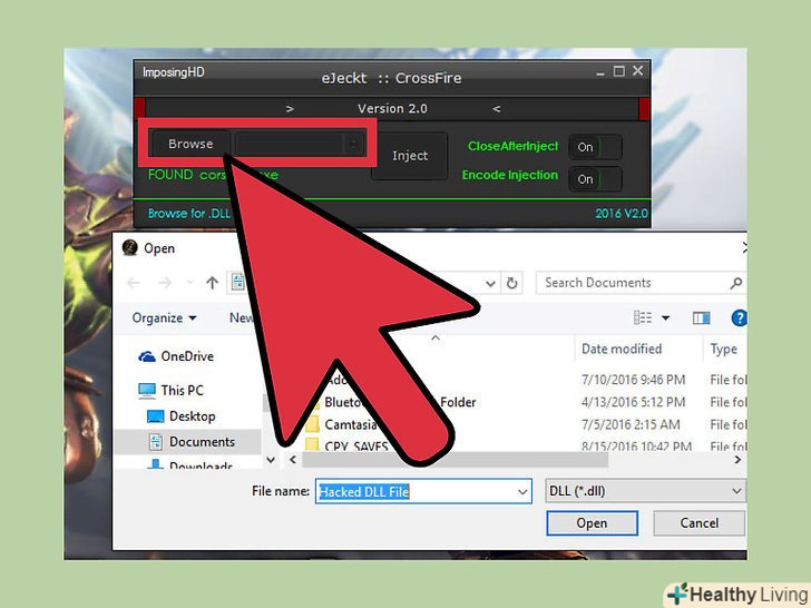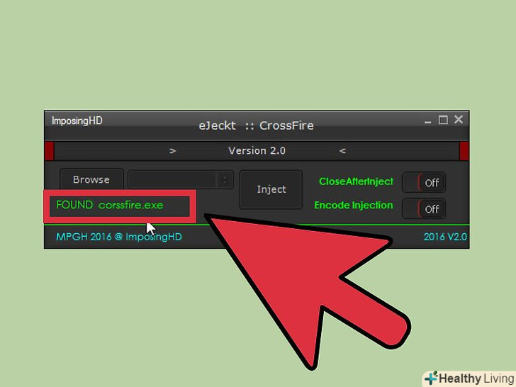 У рядку "Process" (процес) введітьCrossfire.exe . так інжектор підключиться до процесу CrossFire.