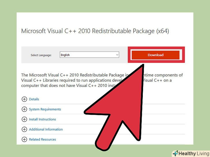 Завантажте та встановіть Visual C++ 2010 Redistributable Package. цей програмний пакет необхідний для запуску «інжектора» для злому гри. 32-розрядну версію пакета можна завантажити на цьому сайті , а 64-розрядну-на цьому сайті .- Якщо ви не знаєте розрядність вашої операційної системи, прочитайте цю статтю .