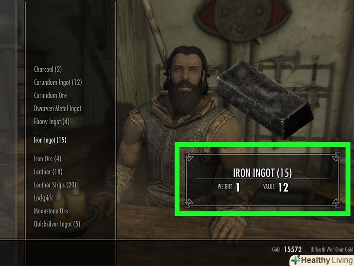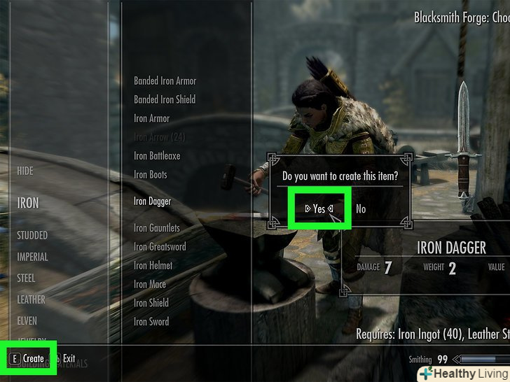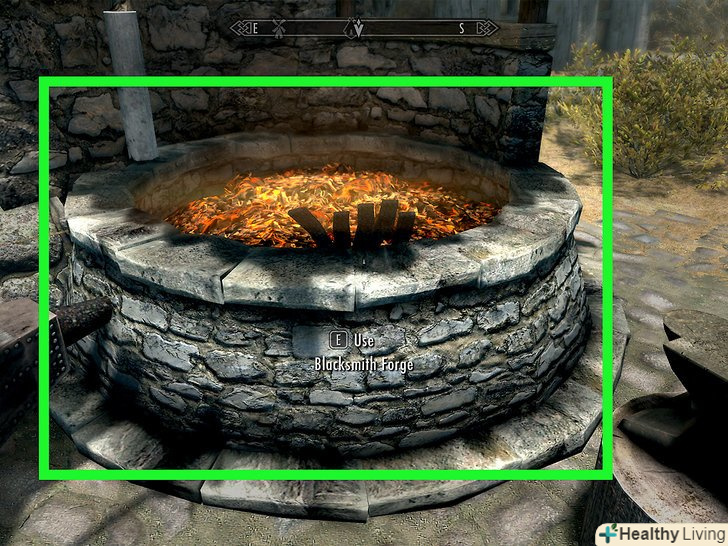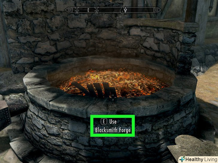 Натисніть на кнопку дії. Встаньте навпроти кузні і подивіться, чи немає на екрані опції на кшталт «[Кнопка дії] використовувати кузню».- На Xbox 360 цеA .