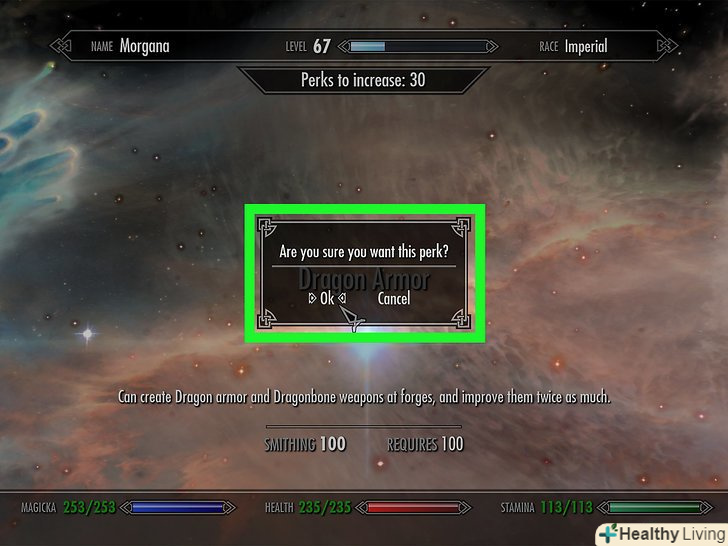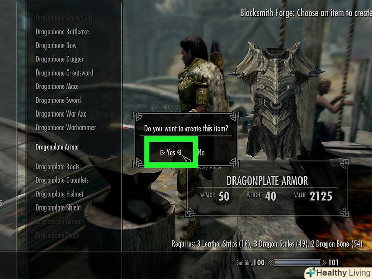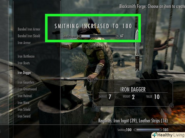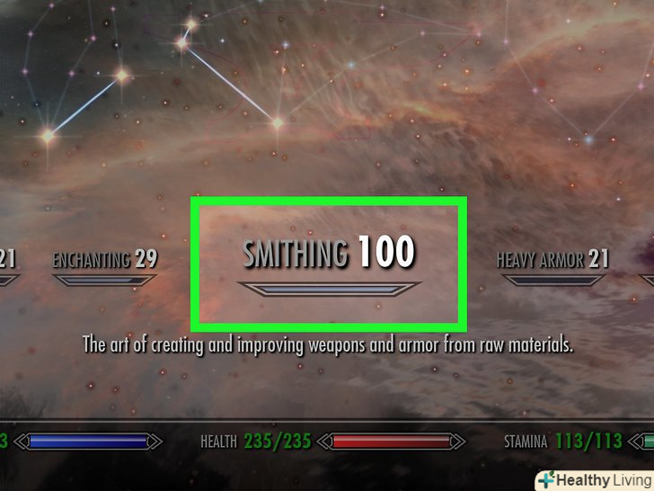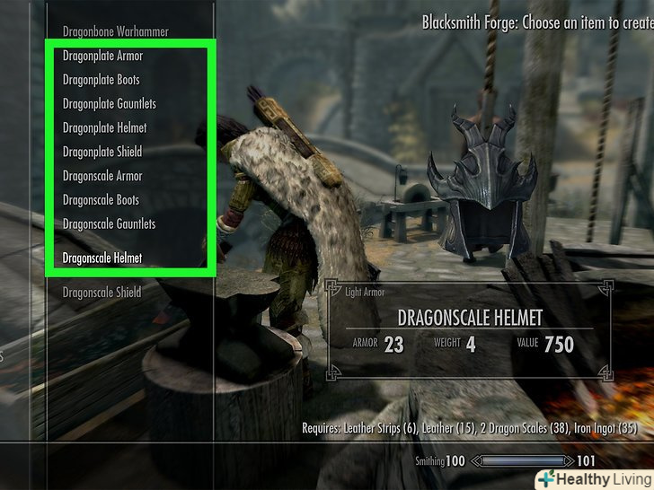 Не витрачайте очки навичок. звичайно, вміння допоможуть вам в бою, проте ваше головне завдання – якомога швидше прокачати ковальську справу. Для цього вам доведеться витрачати всі очки навичок саме в цій гілці, і так до тих пір, поки не дійдете до здатності «драконячі обладунки».