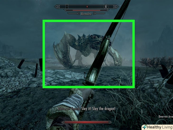- Атакуйте дракона здалеку, щоб послабити його. Не варто намагатися задавити дракона харизмою драконорожденного на ранніх етапах гри – дракон цього не оцінить і вб'є вас.