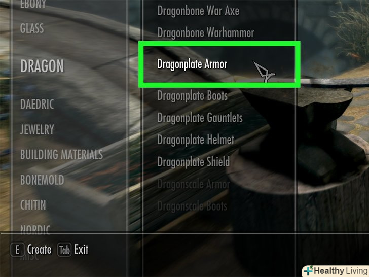 Виберіть «Броня з драконячої кістки». ця версія за замовчуванням, однак ви завжди можете створити її більш легку версію з луски.