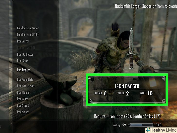 Дізнайтеся, як можна швидко прокачати ковальську справу. для цього вам потрібно скувати багато предметів. Дешевше і швидше за все це зробити, якщо кувати залізні кинджали; на кожен кинджал потрібно взяти:- Один злиток заліза