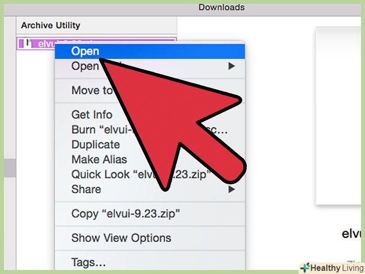 Перш ніж намагатися перенести файли ElvUI в папку WoW на комп'ютері, переконайтеся, що ви їх розархівували. якщо на вашому комп'ютері не встановлена стандартна програма архіватор, скачайте WinZip, WinRar або 7zip для комп'ютера під управлінням ОС Windows, або Unarchiver і StuffIt - для Mac OS X.