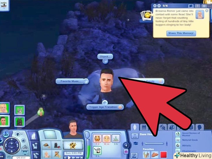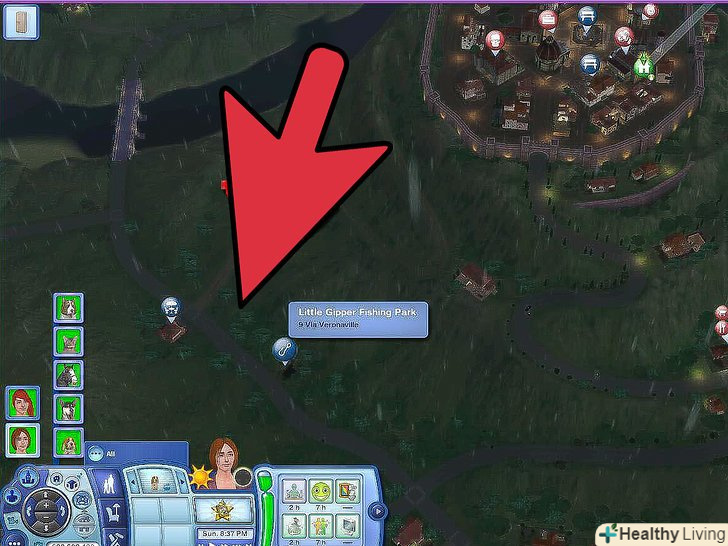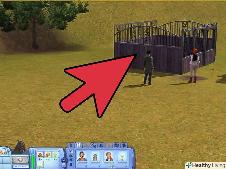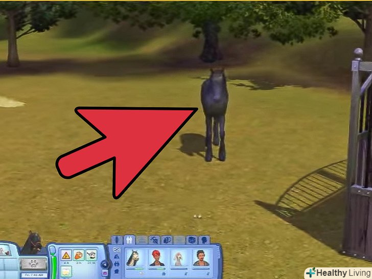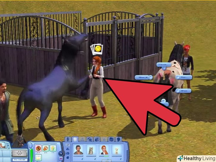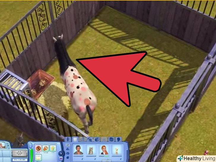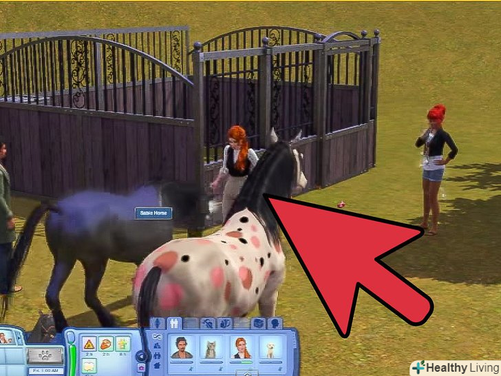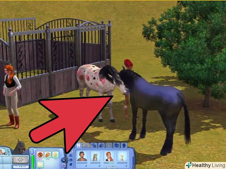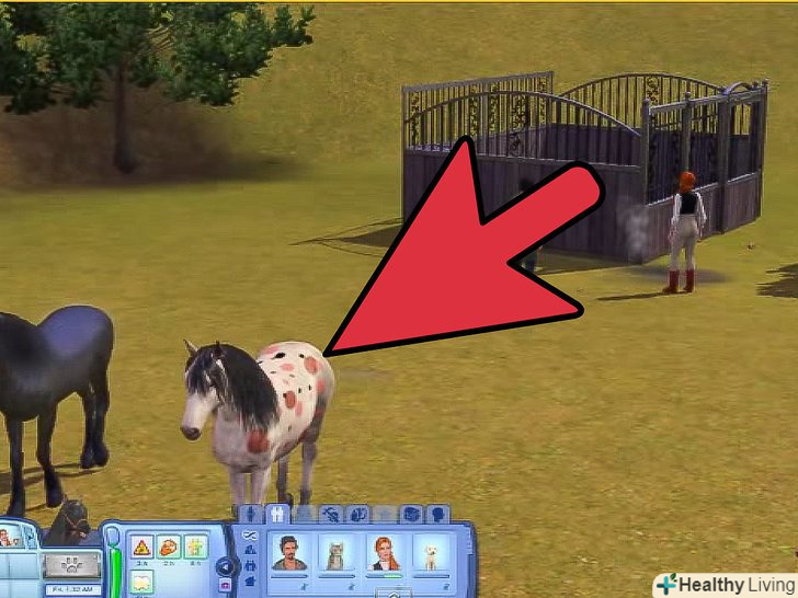 Перейдіть в профіль Сіма (сім, який пішов на рибне місце). Клацніть між скінами двох коней.