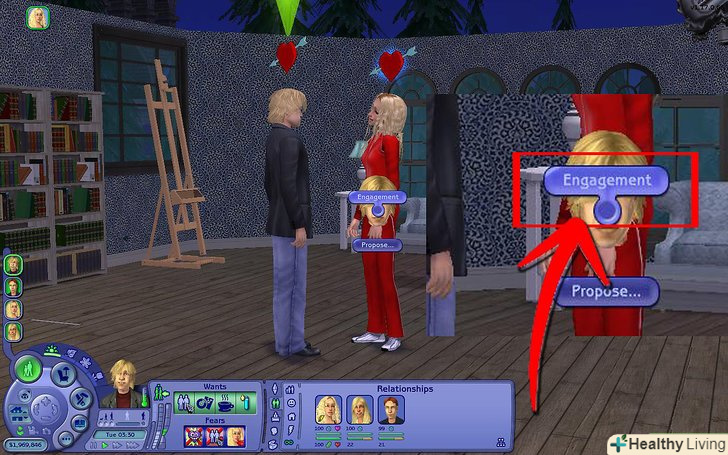 Зачекайте поки з'явиться опція" запропонувати " gt;gt;"одружитися"!! Виберіть цю опцію і відео покаже як робиться пропозиція.