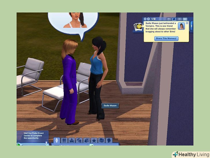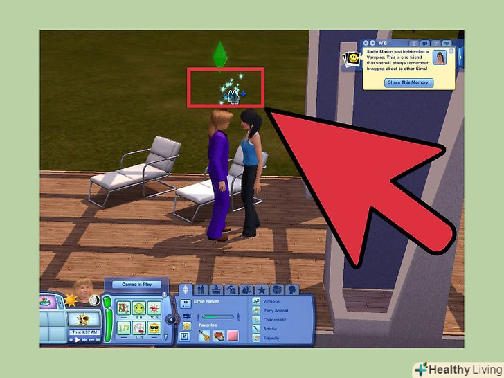 Подружитеся з іншими сімами.виберіть одного Сіма І дозвольте їй або йому поспілкуватися з іншим. У Sims 3 існує величезна безліч соціальних взаємодій. Почніть з парочки тем для розмови, потім перейдіть до інших позитивних соціальних взаємодій. Незважаючи на можливі невдачі на своєму шляху, вже через кілька зустрічей ваші Сіми стануть знайомими, а після – друзями.- Всякий раз при виборі варіантів бесіди враховуйте характерні особливості свого Сіма. Наприклад, автолюбитель насолоджується розмовами про машини, а технофоб терпіти не може обговорення електроніки.