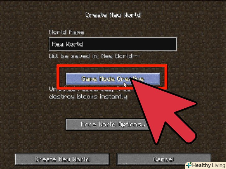 Виберіть ігровий режим для карти.існує кілька ігрових режимів для карт в цій грі; найбільш популярними є наступні режими:- Виживання. Такий ігровий режим передбачає стиль гри, в якому гравцеві необхідно вижити, використовуючи ресурси, розташовані на карті. Гравці можуть руйнувати ігрові блоки, створювати предмети і робити все, що їм заманеться.