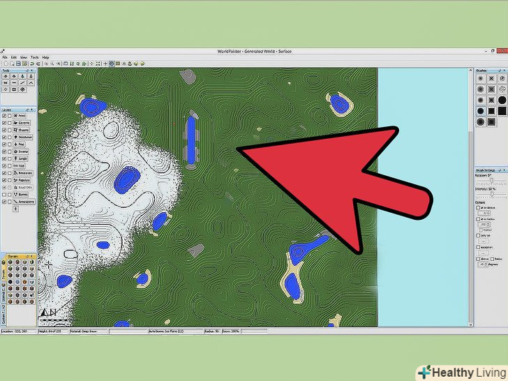 Намалюйте пейзаж.Перед будівництвом різних будівель, було б непогано намалювати загальний пейзаж. Є кілька способів це зробити.- Ви можете спробувати намалювати весь ігровий світ вручну, якщо у вас невеликий проект або багато вільного часу. Для інших випадків існують спеціальні програми або моди: