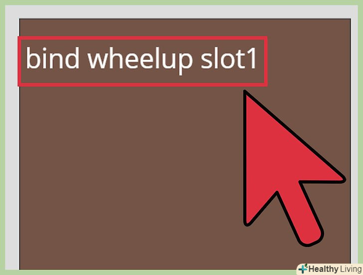 - Введітьbind wheelup slot1 натисніть ↵ Enter. Так ви автоматично переключіться на основну зброю, повернувши коліщатком вгору.