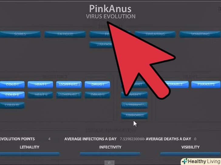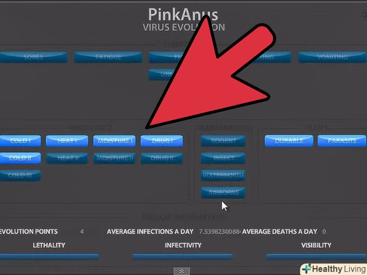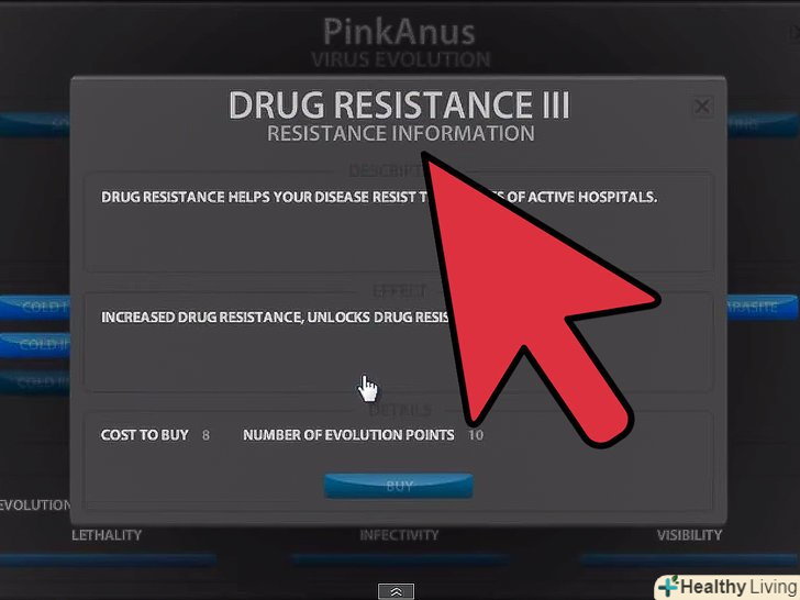 Купуйте опірності.зверніть увагу на клімат, в якому з'явилася ваша інфекція, а також на бонусну опірність, яку Ви отримали з самого початку. Це допоможе вам вибрати те, що потрібно купувати.- Не купуйте новий рівень тієї опірності, яка була у вас з самого початку. Сконцентруйтеся на вдосконаленні інших.