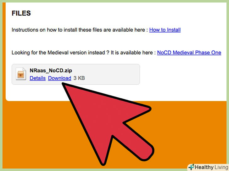 Прокрутіть сторінку в самий низ і скачайте файл NRaas_NoCD.zip.