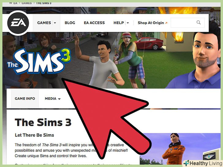 Перейдіть на офіційну сторінку The Sims 3 на сайті EA, пройшовши за адресою: http://www.ea.com/the-sims-3.