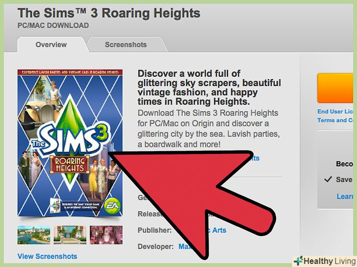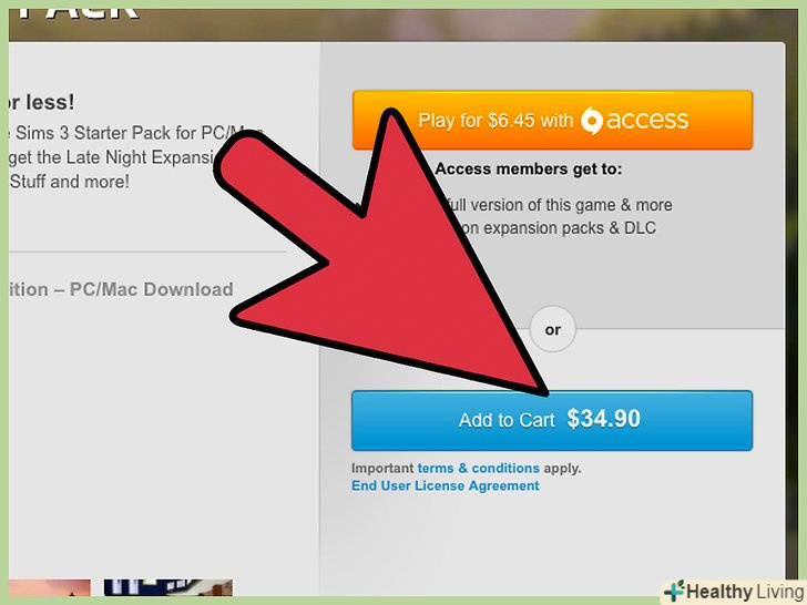 Натисніть "Додати в кошик", а потім дотримуйтесь інструкцій на екрані, щоб купити The Sims 3.в даний час гра продається за ціною 1499 рублів і включає в себе два пакети доповнень, але ціни і функції могли вже змінитися. Вас можуть попросити створити обліковий запис EA / Origin. Подальші покупки ігор від EA / Origin будуть здійснюватися через клієнт Origin.
