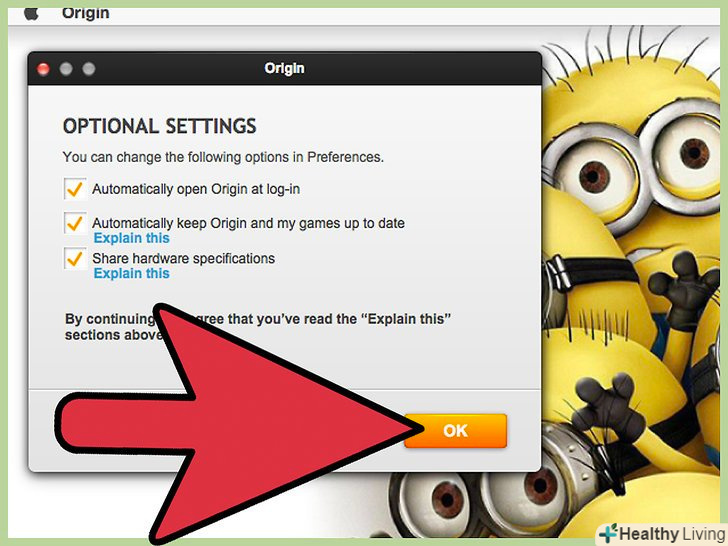 Дотримуйтесь інструкцій на екрані, щоб встановити Origin на комп'ютер.