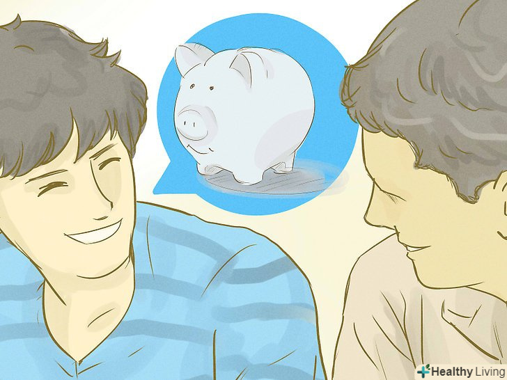 Скажіть комусь, що Ви економите гроші. це називається «підзвітність». Фактично це означає, що хтось ще буде знати про те, чим ви займаєтеся. З точки зору економії, так людина може утримати вас від витрат в період спокуси. Однак, переконайтеся, що це не той, хто буде спонукати вас зійти зі шляху.- Ви навіть можете обидва збирати гроші на щось, і той, у кого вийде це раніше, повинен купити іншому квиток в кіно або щось ще, що вам обом дійсно подобається.