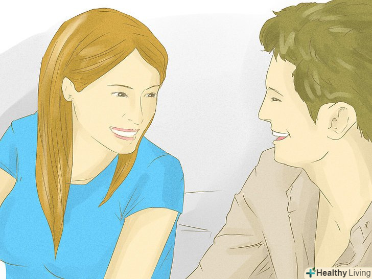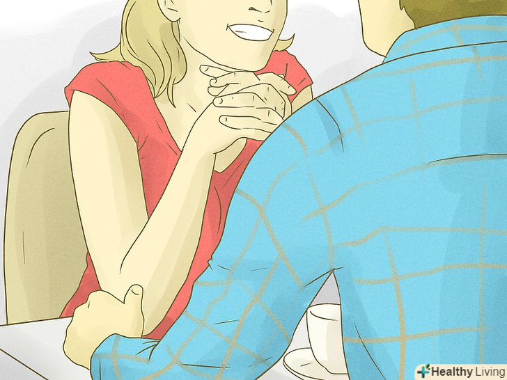 Подолайте бар'єр дотиків. як тільки у вас з дівчиною почалися відносини, не бійтеся невеликого випадкового флірту і дотиків. Просто нахиліться до неї ближче і покладіть свою руку на її кисть або плече, щоб подивитися на її реакцію. Якщо вона здригнеться або віддалиться, то, швидше за все, буде краще, якщо ви припините. Але якщо вона пригорне до вас або навіть зачепить у відповідь, то це сигнал про те, що вона хоче подолати бар'єр дотиків.- Ви також можете грайливо постукати по її руці, коли будете приколюватися один над одним, щоб це виглядало як жарт.