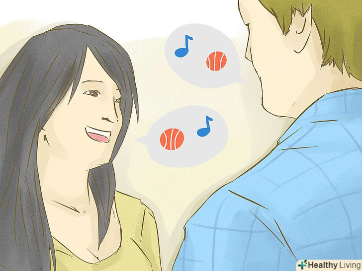 Знайдіть спільні інтереси. Необов'язково, щоб Ви були спорідненими душами з дівчиною, яку хочете підчепити, але Вам безумовно не завадить, якщо ви знайдете щось спільне. Це може бути ваша любов до футбольної команди "The Warriors", ваша одержимість телепередачею "Community" або навіть той факт, що ви ходили в один і той же коледж з різницею в три роки. Ви навіть можете з'ясувати, що маєте ще щось спільне, наприклад, такі дрібниці, як ваша неприязнь до бармена або любов до чорного кольору. Як тільки у вас з дівчиною знайдуться спільні інтереси, ви зможете налагодити нормальне людське спілкування.- Якщо з'ясувалося, що у вас немає спільних інтересів – улюблених спортивних команд, телепередач або музики, то ви можете трохи пожартувати над її смаками за умови, що вона зробить те ж саме.