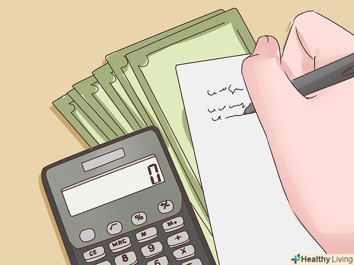 Складіть фінансовий бюджет. складіть список всіх своїх щомісячних витрат. Потім складіть список щомісячних доходів. Якщо ваш щомісячний дохід менше ваших щомісячних витрат, вам потрібно вирішити, де ви можете заощадити або як заробити більше грошей. Різниця в щомісячних доходах і витратах повинна бути розділена на витрати і заощадження. [11]
