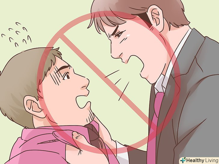 НавчітьсяЗріло залагоджувати конфлікти . при зіткненні з конфліктною ситуацією, важливо тримати себе в руках. Контролюйте свій гнів і не стаєте войовничо налаштованим. Зробіть глибокий вдих, вислухайте людини і попрацюйте з ним над вирішенням ситуації. [3]- Дайте собі час охолонути, якщо ви дуже розгнівані. Таким чином, ви не скажете і не зробите небажаних речей зопалу.