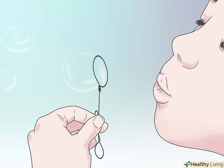 Надуйте бульбашки. спочатку вийдіть на вулицю, так як бульбашки виглядають красиво, коли через них світить сонце. Вмочіть маленьку паличку для бульбашок в розчин для бульбашок. Тримайте круглу частину палички поруч з вашими губами і подуйте повільно. Спостерігайте за тим, як міхур почне утворюватися на паличці і відлітати, а потім як він лопне.- Якщо ви використовуєте бульбашки з харчовим барвником, намагайтеся не робити їх всередині будинку, так як вони можуть забруднити меблі і килими.