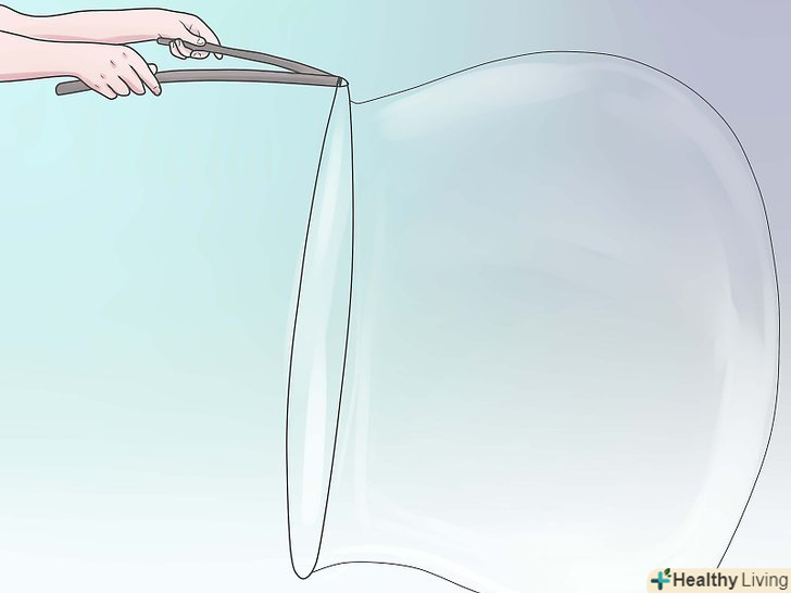 Зробіть гігантські бульбашки. Налийте розчин у неглибоку миску. Покладіть велику паличку в розчин, щоб сито або марля повністю вкрилися розчином. Повільно підніміть паличку з розчину і переконайтеся, що мембрана мильного розчину натягнута по всьому колу. Повільно почніть махати паличкою по повітрю: великий мильна бульбашка повинен почати утворюватися і відділятися від сітки.- Щоб зробити ще більший міхур, ви можете побігти, розмахуючи паличкою.