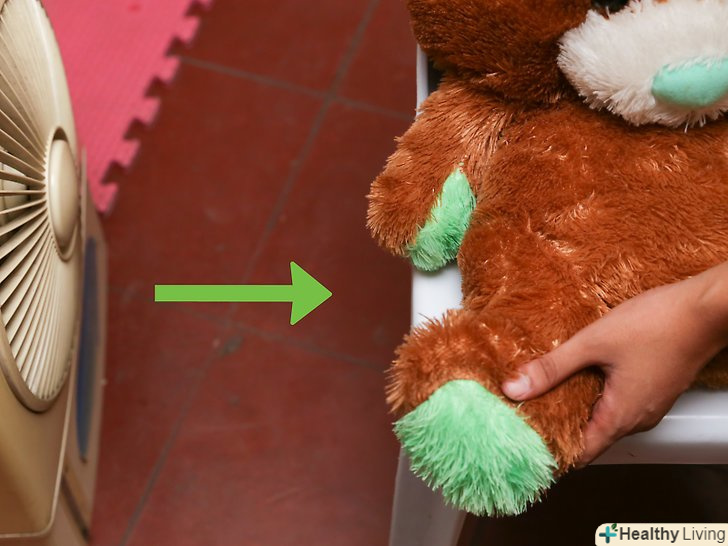Залиште ведмедика сохнути природним шляхом. для досягнення найкращих результатів залиште іграшку сохнути природним чином. Посадіть ведмедика на сушарку для білизни подалі від прямого сонячного світла і залиште так на ніч або помістіть іграшку в мішок для сушіння і підвісьте на мотузку для білизни, якщо вона натягнута в затіненому місці. [17] не підвішуйте самого ведмедя до мотузки або сушарці — це може привести до його пошкодження. [18]- Якщо направити на іграшку потік повітря від вентилятора, це допоможе вам висушити її швидше. [19]