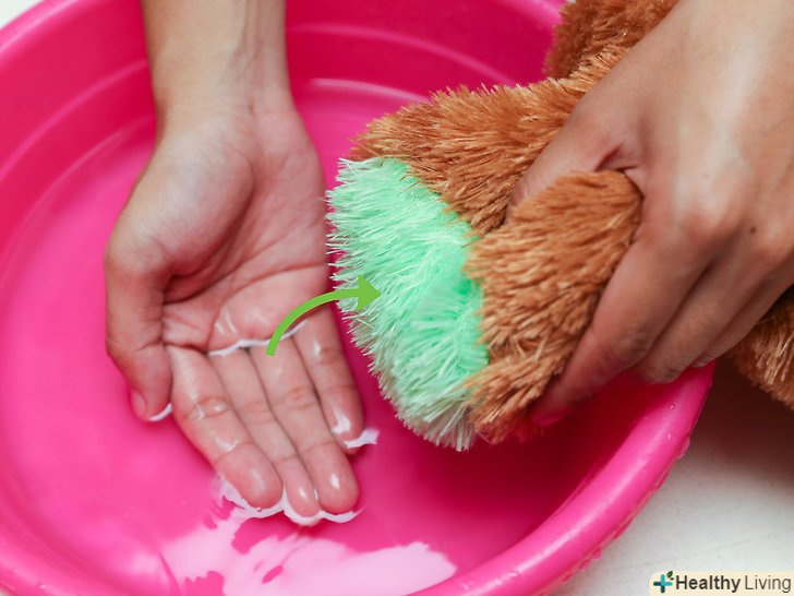 - Для відтирання важких плям можна використовувати зубну щітку. Однак щетина щітки досить грубо впливає на іграшку, тому вдавайтеся до цього способу тільки в тому випадку, якщо ніщо інше не допоможе. [23]