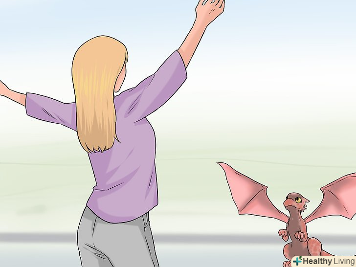Навчайте свого дракона. як тільки ви досягнете його довіри, можна починати вчити дракона важливим речам. Дочекайтеся, поки дракон зверне на вас увагу, помахайте руками як крилами. Незабаром дракон почне повторювати за вами. Будьте готові зловити вихованця, якщо він почне падати. Маленький дракон буде продовжувати намагатися злетіти, поки не зміцніє і не навчиться літати.