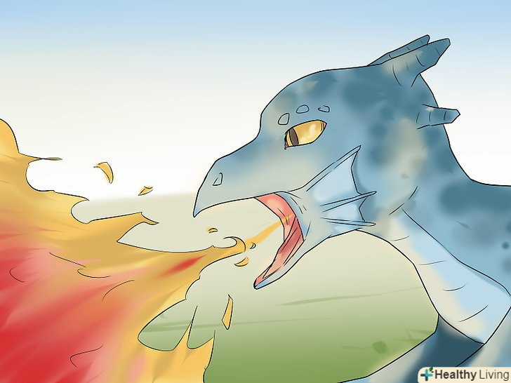 Вчіть дракона дихати вогнем. зазвичай для цього дракону потрібно набрати побільше повітря, і якщо його легені вже виробляють достатню кількість горючих речовин, він видихає полум'я в бік мети. Деякі жароміцні іграшки можна зробити навчальними мішенями.- Слідкуйте за здоров'ям свого дракона. щоб виміряти температуру тіла свого дракона, помістіть електронний градусник в пахвову область (ніколи не ставте градусник в пащу!) вихованця і постарайтеся потримати його там до звукового сигналу. Нормальна температура тіла дракона відрізняється від виду до виду — від палючого спека вулканічного вогняного дракона до крижаного холоду чорного крижаного. [1] якщо розмах крил вашого дракона дорівнює довжині його тіла, то він розвивається нормально. Якщо ви помітите щось незвичайне, відведіть свого дракона на прийом до ветеринара-драконоведу.