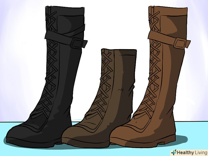 Носіть армійські черевики. Гранжери носять в основному армійські черевики. Відповідними квітами будуть Чорний, темно-бордовий, сірий або коричневий. Ви навіть можете купити черевики з візерунками. Армійські черевики роблять образ гранж ще більш неформальним і зручним. Можете носити їх з футболкою, спідницею в квіточку, фланелевою сорочкою навколо талії і парою дірявих колготок — ви будете виглядати чарівно.- Дуже популярні черевики фірми Doc Martens. Такі актриси, як Лів Тайлер, Вайнона Райдер і Анжела не раз були помічені у взутті цієї фірми. Навіть ікона стилю Джейн Лейн з мультсеріалу "Дар'я" також носила армійські черевики. Якщо ви хочете відповідати цьому стилю, придбайте пару "мартенсів". [17]