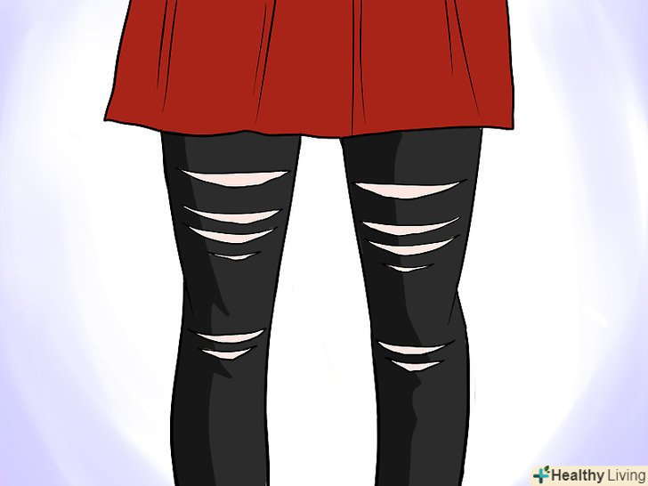 Носіть рвані колготки або панчохи. якщо вам не подобається весь час ходити в джинсах, носіть порвані колготки або панчохи, щоб створити завершений образ в стилі гранж. Кортні Лав часто носила сукню з рваними колготками. Купіть колготки нейтрального забарвлення або з малюнком. Як і у випадку з джинсами, виконайте в них кілька дірок. Носіть такі колготки зі спідницею або сукнею. Також можете носити їх під джинсами. [12]- Ви можете надіти одночасно кілька колготок з дірками в різних місцях. Якщо ви виберете колготки різних кольорів або малюнків, ваш наряд в стилі гранж стане більш виразним.
