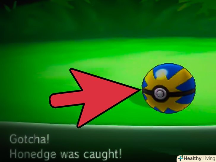 Спіймайте Хонеджа.процес упіймання Хонеджа на маршруті 6 досить прямолінійний. Як тільки ви вступите з ним в бій, доведіть його HP (percentage of health — рівень здоров'я) до низького рівня (не доводячи його до непритомності), а потім киньте свій кращий покебол. Хонедж, з якими ви зіткнетеся, буде приблизно 11-12 рівня, так що важкої цю битву не назвеш. Ось пара речей, про які вам буде корисно дізнатися:[3]- Хонедж вкрай слабкий проти примарних, вогненних, земляних і темних атак;