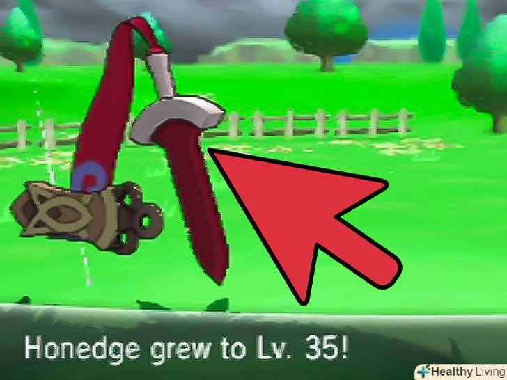 Прокачайте Хонэджа до 35 рівня. Прокачайте Хонэджа звичайними методами. Оскільки спійманий Хонедж буде 11-12 рівня, вам доведеться набрати досвід, щоб досягти 23-24 рівня, тільки тоді він зможе еволюціонувати. Це може зайняти деякий час, який можна значно скоротити, якщо використовувати такі речі, як:- Цей предмет розподіляє досвід всім покемонам в групі, а не тільки тим, які брали участь в битві. Прилад досвіду можна отримати у Алекса в Санталуні після перемоги над Віолою.[4]