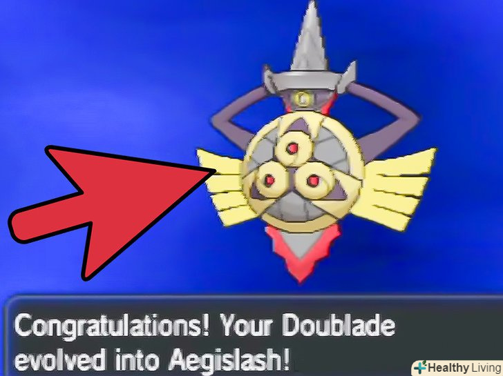 Використовуйте камінь заходу сонця на Даблейді.з каменем заходу еволюціонувати буде простіше нікуди. Просто використовуйте предмет на Даблейді, щоб запустити еволюцію і стати власником Аегіслеш!- Оскільки камінь заходу є одноразовим, гарненько подумайте, перш ніж використовувати цей рідкісний предмет.