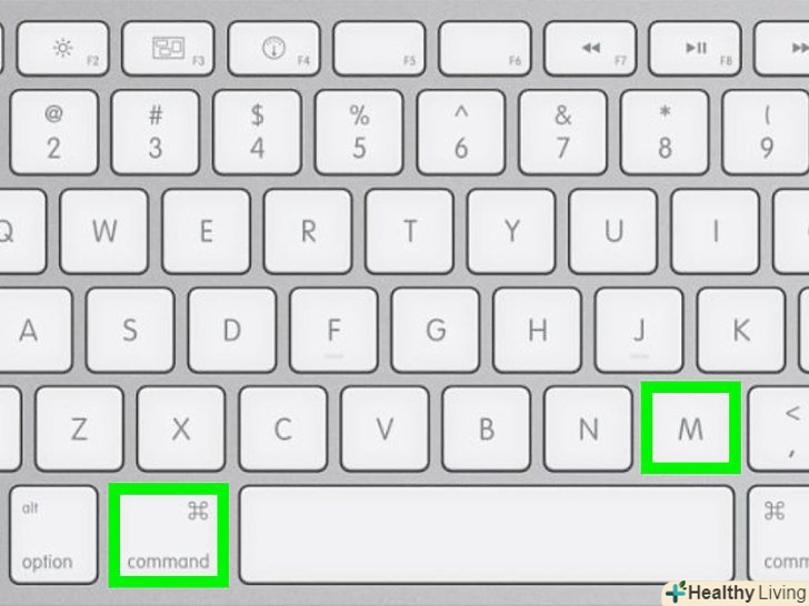 Натисніть⌘ command+m, щоб згорнути активне вікно. щоб розгорнути це вікно, клацніть по його значку в доці (біля кошика).- Деякі програми просто вийдуть з повноекранного режиму, якщо натиснути це поєднання клавіш. Тому потім потрібно натиснути жовту кнопку» Згорнути", щоб згорнути вікно.