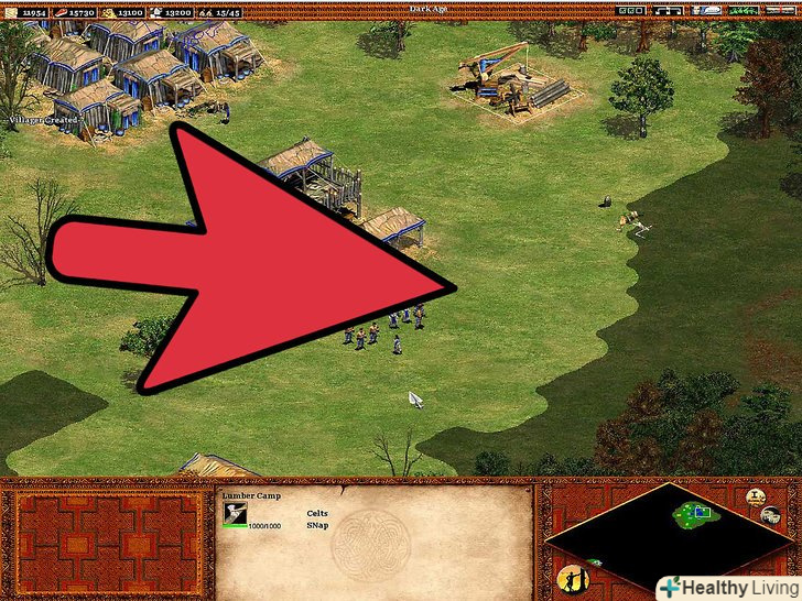 - Загін двох поселенців на будівництво будинків. Це тимчасово збільшить населення до 15, що дозволить вам ... створити більше поселенців! Не будуйте будинки одним поселенцем, нехай обидва відразу працюють над одним будинком, щоб не збивати чергу створення поселенців. Коли будинки будуть побудовані, нехай ці двоє будують лісопилку біля лісу-ваш скаут вже повинен був знайти ліс, до речі.