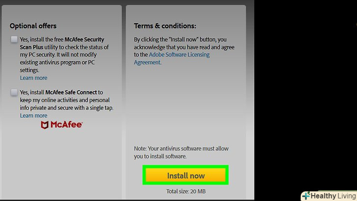 НатиснітьВстановити зараз. це жовта кнопка в нижній правій частині сторінки.