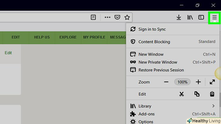 Клацніть по☰.ця опція знаходиться у верхньому правому куті вікна Firefox. Розкриється меню.
